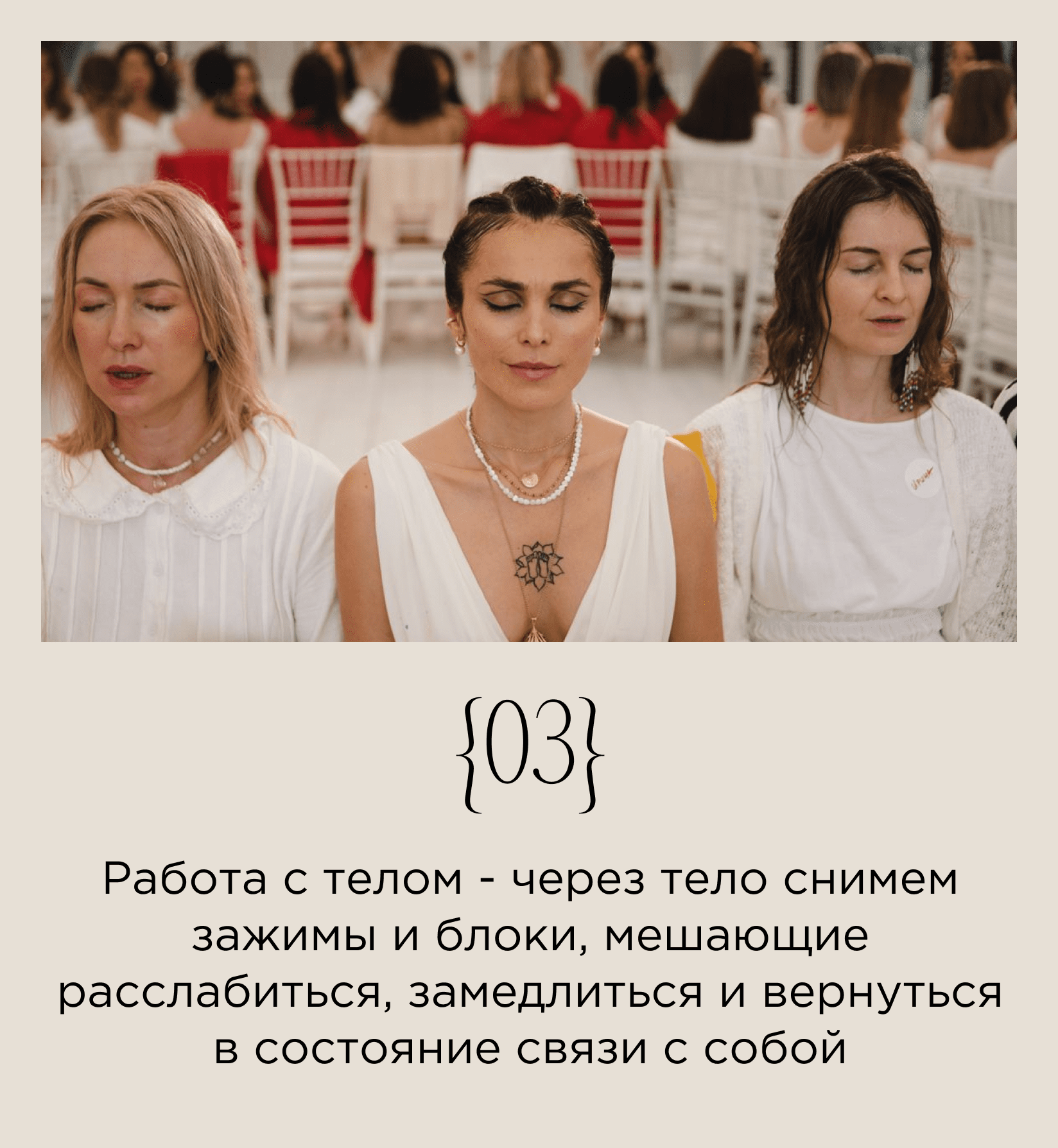 НА ВСТРЕЧЕ-ПРАКТИКЕ КАЖДАЯ ЖЕНЩИНА ПРОЙДЕТ СВОЮ, ОСОБЕННУЮ ТРАНСФОРМАЦИЮ, ПОГРУЗИТСЯ В СОСТОЯНИЕ ЦЕЛОСТНОСТИ И ПОНИМАНИЯ СВОЕЙ ЖЕНСКОЙ ВНУТРЕННЕЙ СИЛЫ