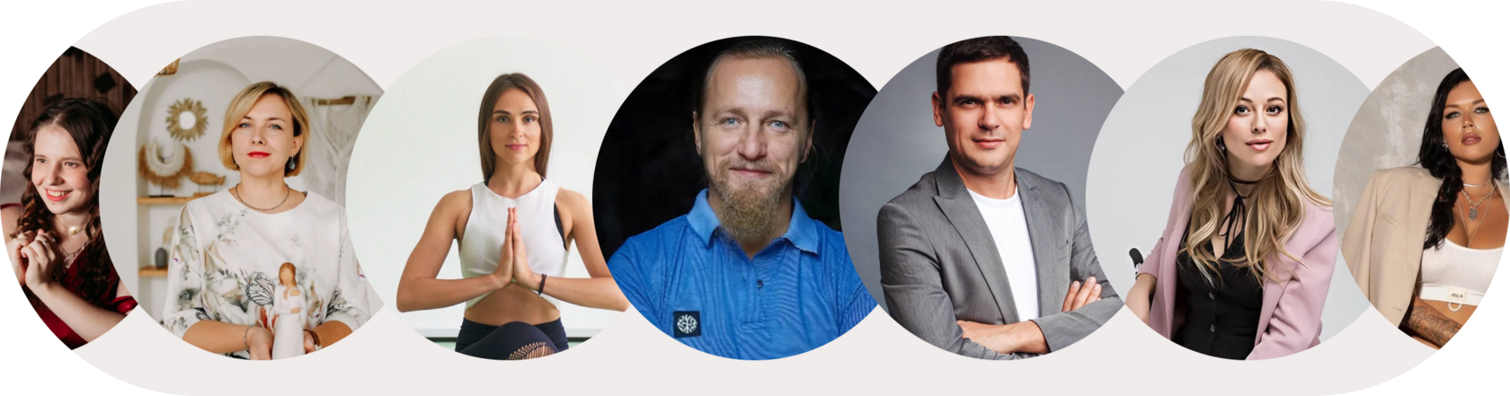 Эфира с приглашенными экспертами и мастерами в сфере саморазвития, психологии, питания, здоровья, предназначения, отношений